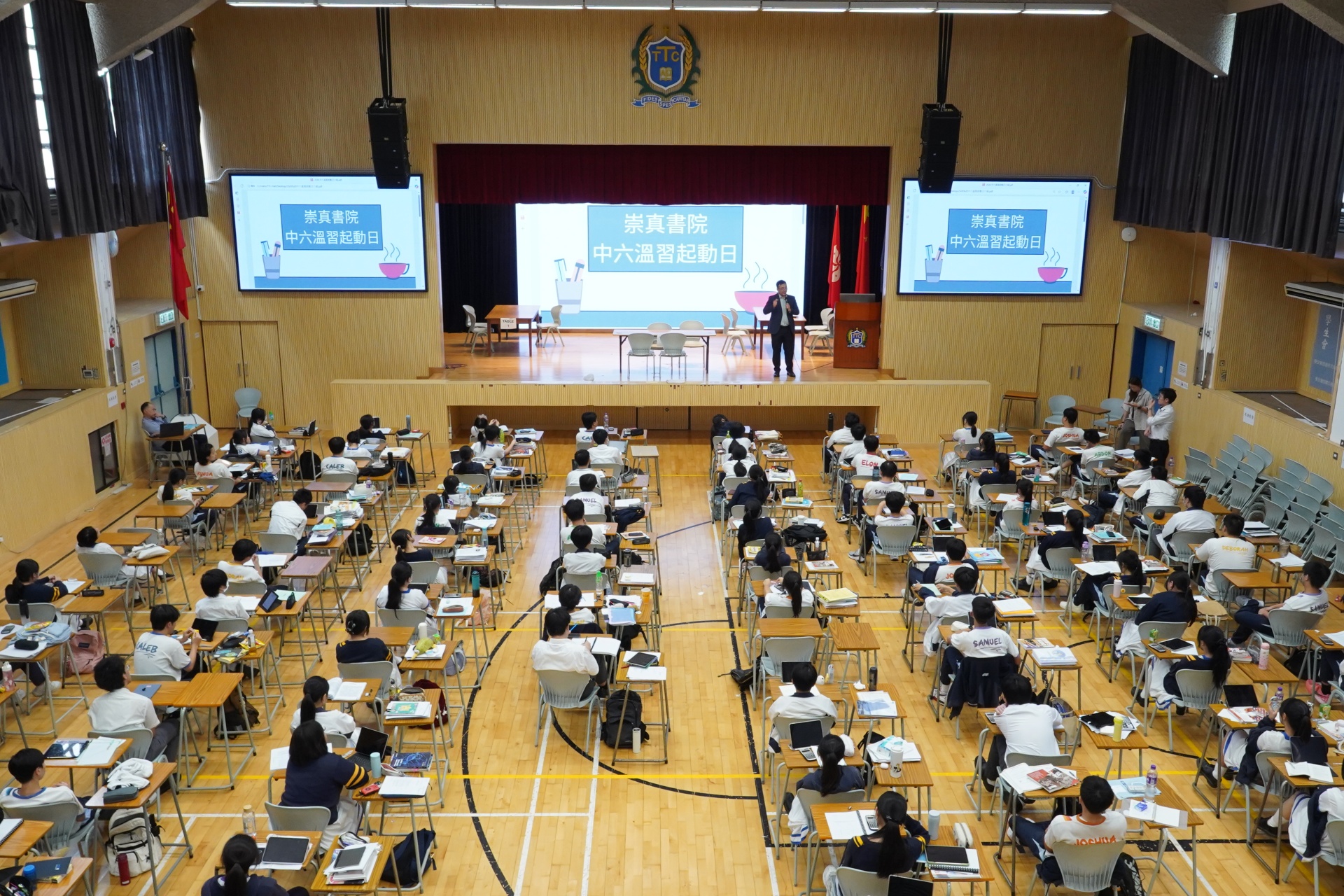 All Form 6 students gather in the hall to study together, eagerly preparing for the upcoming mock examinations and the HKDSE!