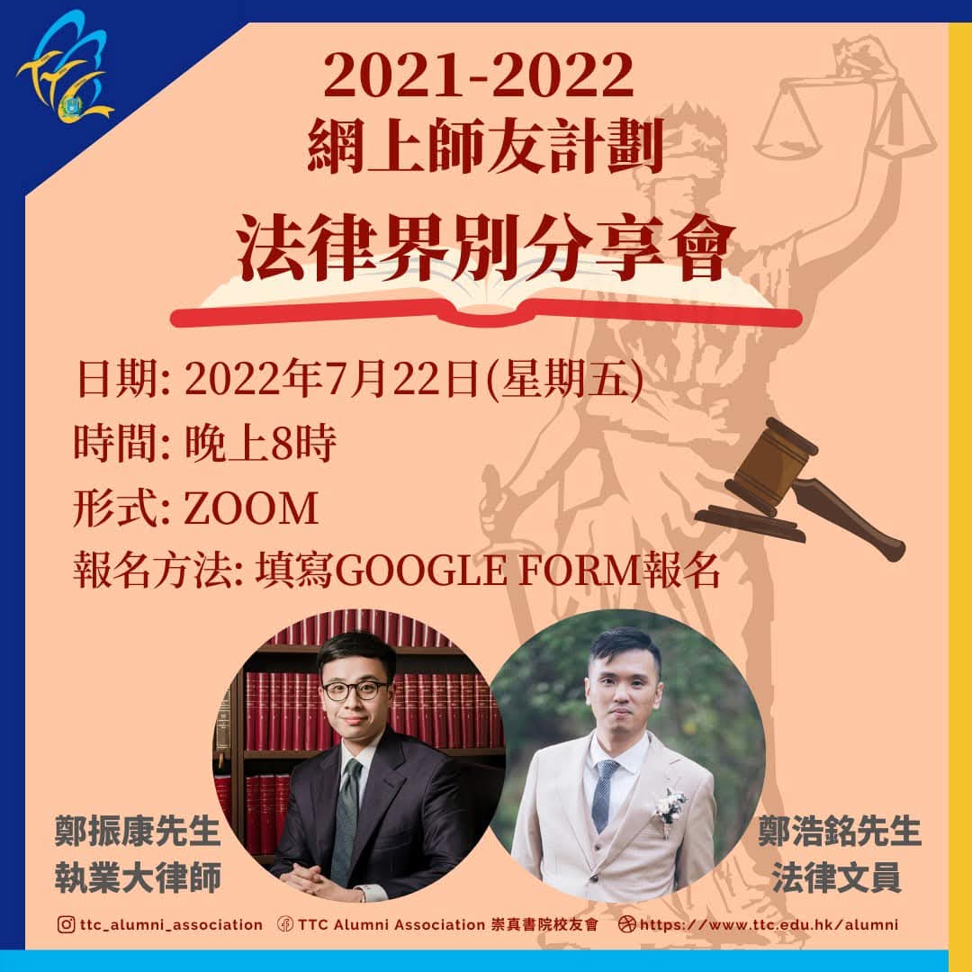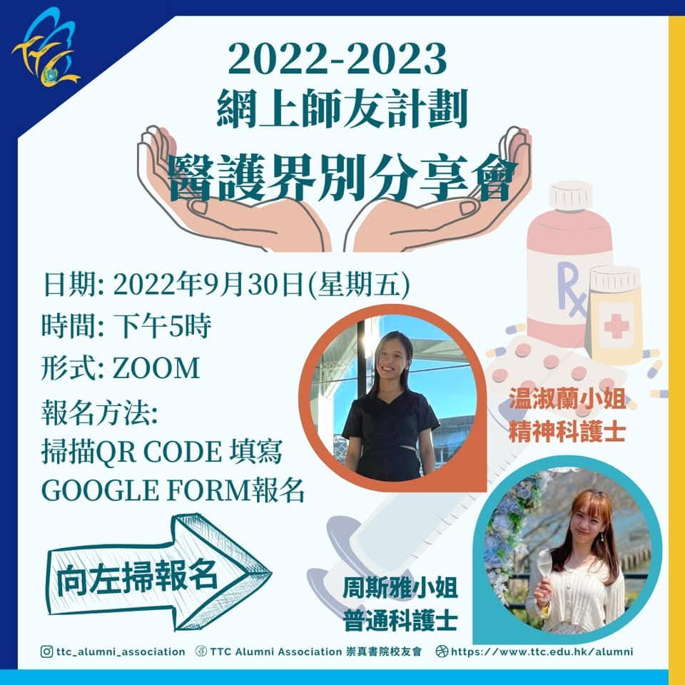 For More Information, Please Email or Facebook ✨ Ms. Ma Mei Lan ✨ Mr. Liu Man Wai ✨ Ms. Lau Chun Yuk Email:ttcalumni@ttc.edu.hk Facebook: TTC Alumni Association 崇真書院校友會 Instagram: ttc_alumni_association |