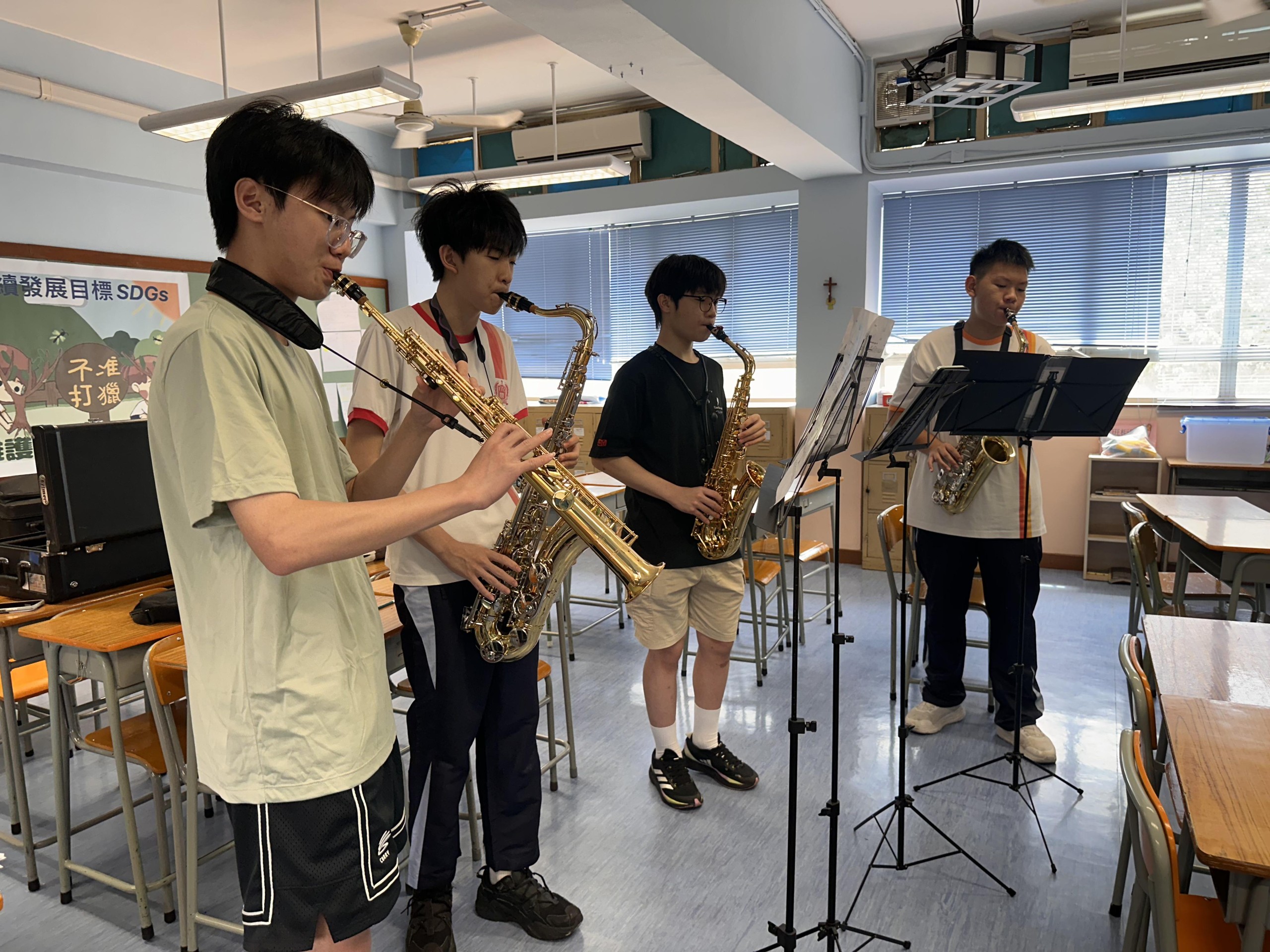 The school has been actively promoting a lifelong learning programme for musical instruments, with the option to learn a variety of musical instruments during the same period, including flute, clarinet, jazz drums, orchestra percussion, knotta, pop band, saxophon, violin, high and bass brass classes. Learning musical instruments can enhance students' musical training and build their ability to work together and communicate with each other.