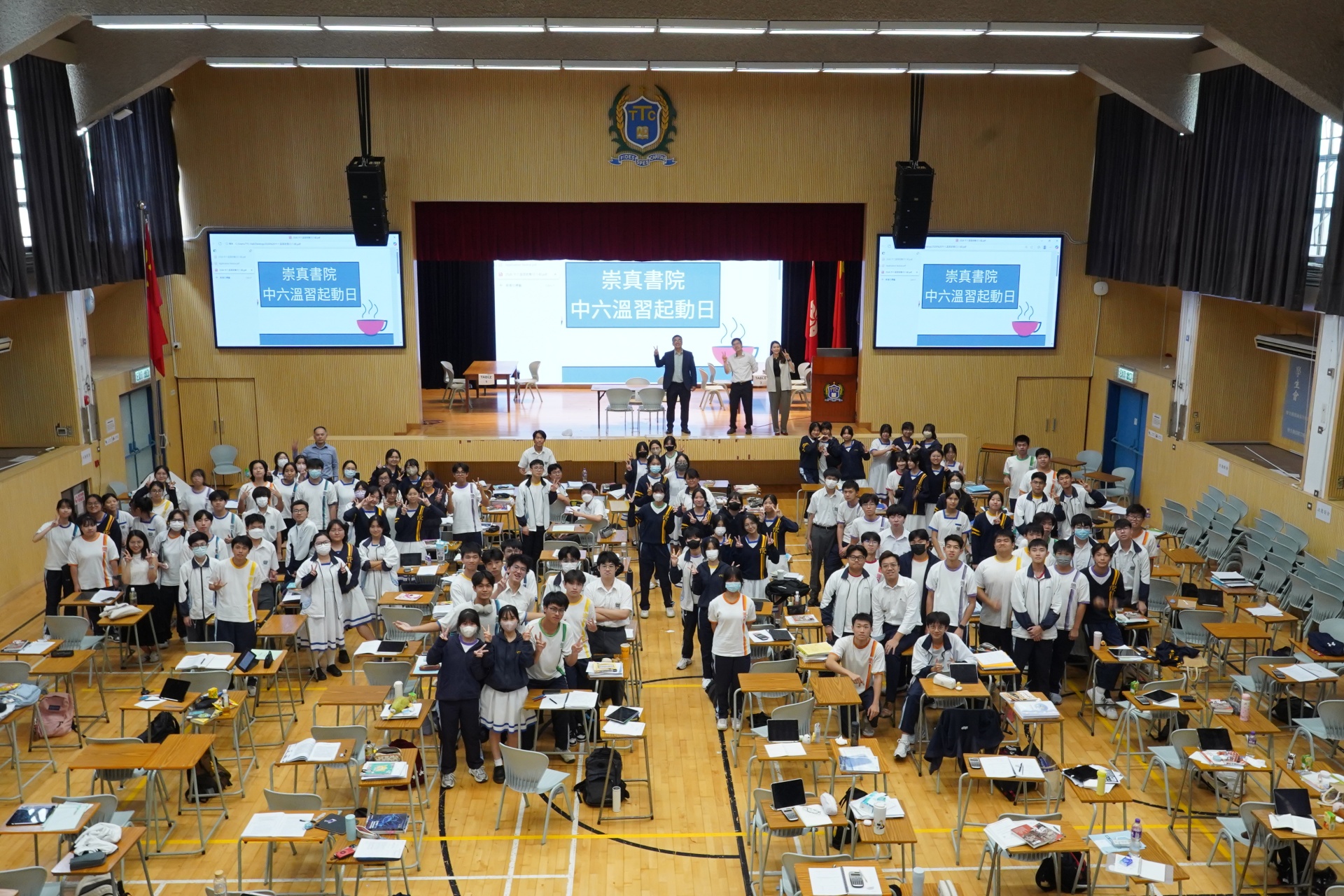 All Form 6 students gather in the hall to study together, eagerly preparing for the upcoming mock examinations and the HKDSE!