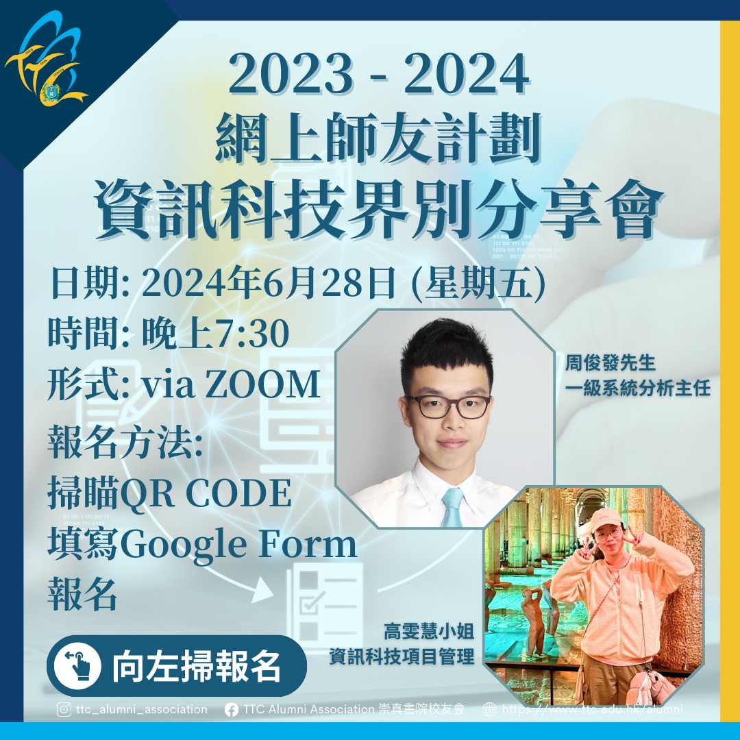 From 2022 to 2024, thanks to the support of our alumni, the Executive Committee organized multiple Alumni Sharing Sessions, in which different industry information and experience after graduation in TTC were shared with students and alumni.
